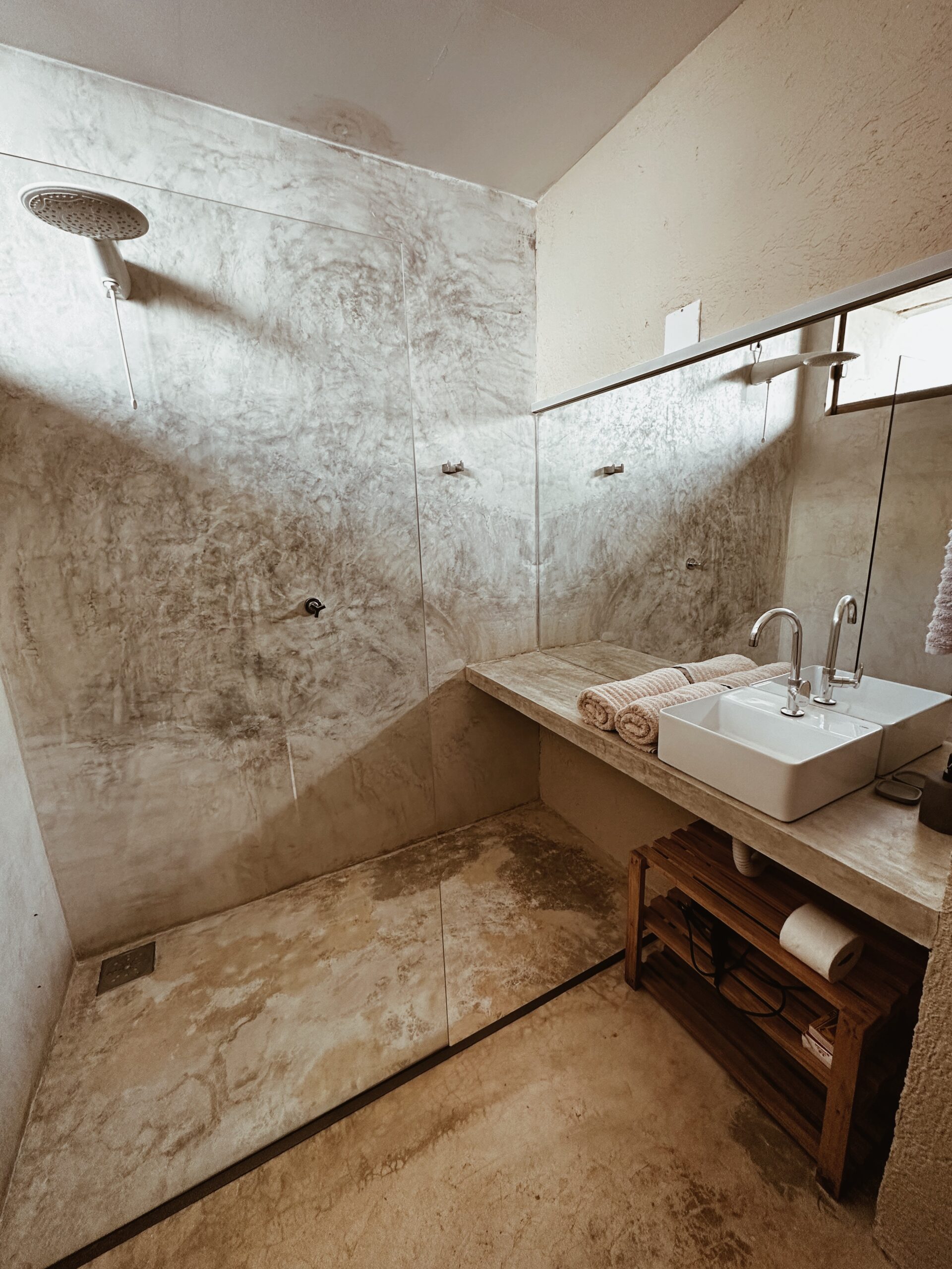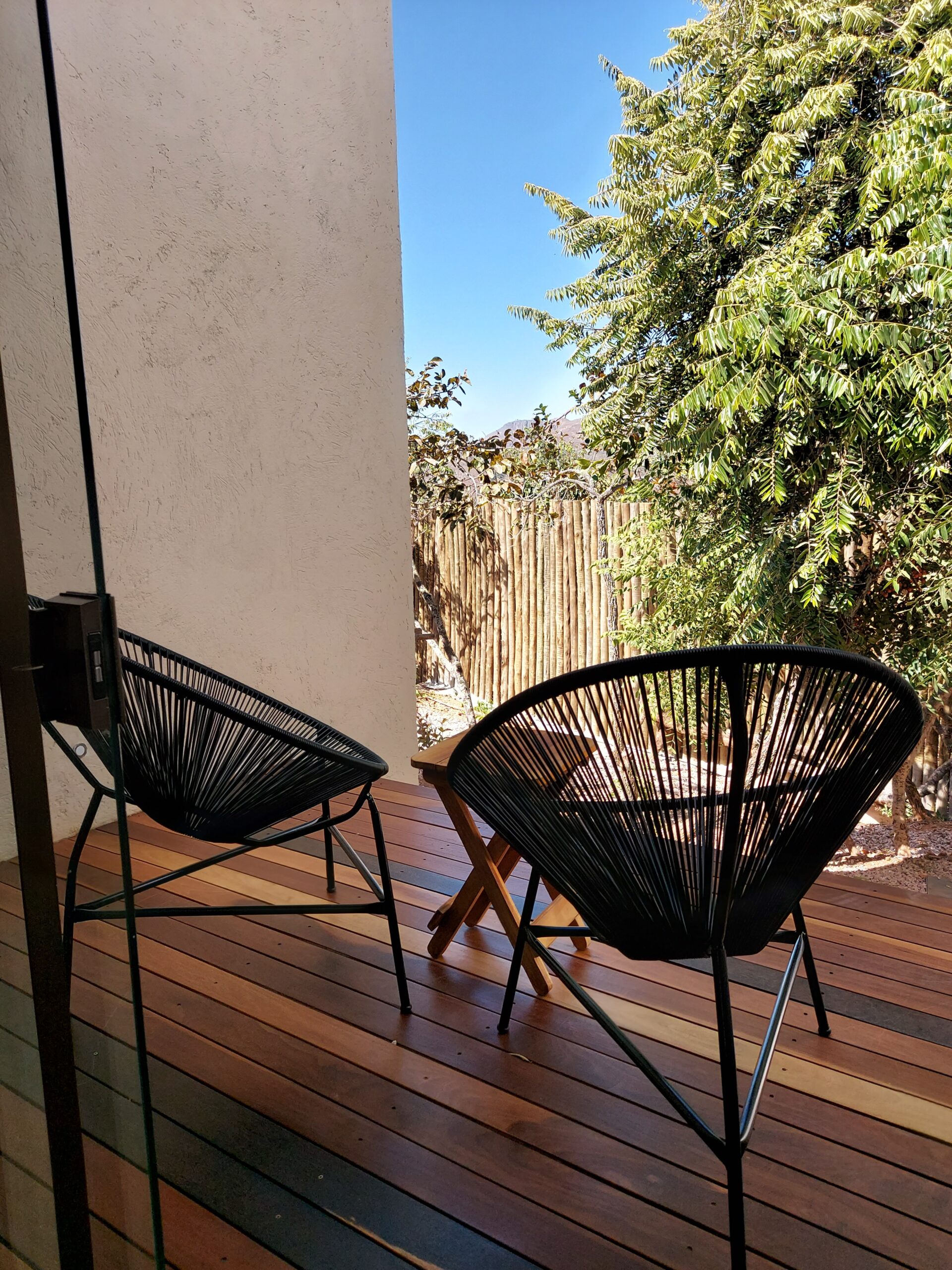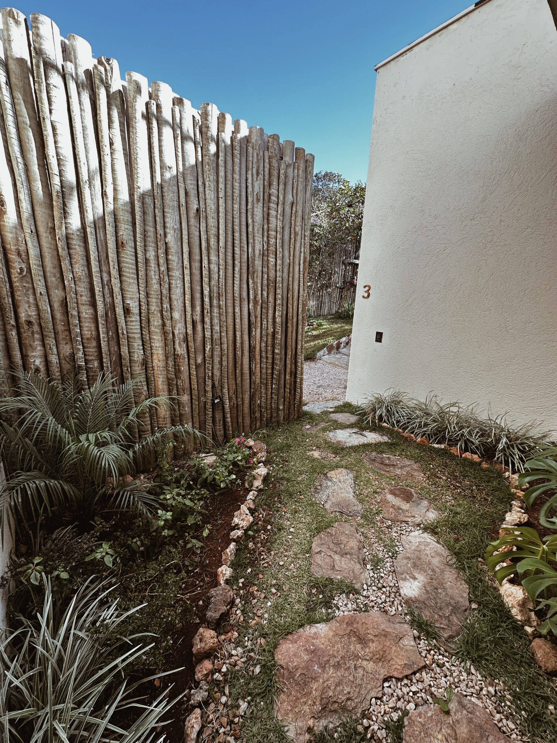 Uma suíte ideal para casais. Possui jardim exclusivo na entrada, cama queen, deck privativo. Equipada com smartv, frigobar, cafeteira elétrica, ar-condicionado, banheiro com chuveiro elétrico. Enxoval completo, lençóis de 1000 fios, toalhas de banho e toalhas para cachoeira.